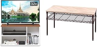 【テレビ台+テーブルセット】 アイリスオーヤマ テレビ台 ウォールナット 7.2×84.1×29.8 OTS-70B-N + テーブル 収納付き ノートパソコンも置ける 木目調 テレワーク推奨 カラーメタルラック 幅76×奥行36㎝ CMM-T76362 ブラウン