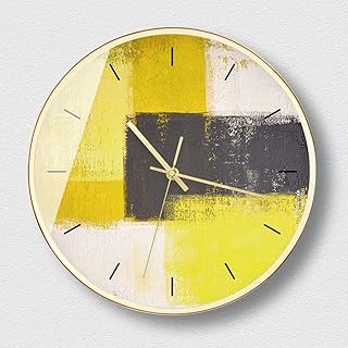 時計 掛け時計 アートクロック 円形 壁掛け時計 続秒針 静か グラデーション 北欧 デザイン シンプル おしゃれ ツートンカラー イエロー ブラウン モダン 目盛り 掛時計 アートパネル 飾り 5タイプ可選 金属枠 インテリア 上質感 部屋 明るい 爽やか YKFN