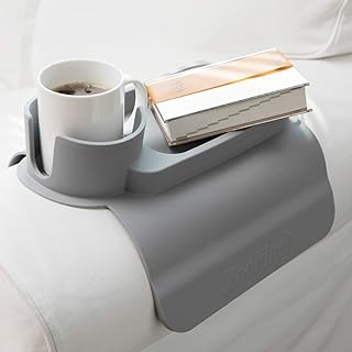 シリコンカップホルダートレイ アームチェア カウチキャディ ソファリクライニング用 - 滑り止めアームレストリモコンと携帯電話オーガナイザーホルダー (01.グレー)