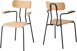 アームチェア 北欧風 曲げ木アームチェア 木製 肘掛け付 (ダークブラウン)