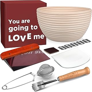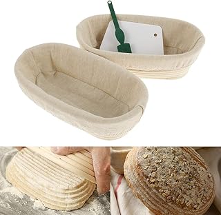 背の高いパン バヌトン プルーフ バスケット、1インチ高めのバヌトンバスケット、パンベーキング用プルーフィングバスケット+ライナー+パンラメ+生地スクレーパー+ベンチスクレーパー+ベーキング用小麦粉ダスター。