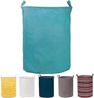 Every Deco 円柱 ラウンド シングル ファブリック プラスチック フレーム ランドリーバスケット バスケット バスケット 収納容器 整理 折りたたみ式 おもちゃ 服 高さ17.7インチ Mサイズ ターコイズ