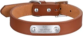 PROSTEEL 犬首輪 中型犬 迷子札 ブラウン 本革 レザー セーフティー 安全 おしゃれ 可愛い 調整可能 ペット ID ネームタグ L(28-36cm)