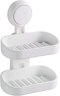 Elebac 2層ソープディッシュホルダー 吸盤 ソープバーホルダー 排水デザイン ソープセーバー 壁掛けソープトレイ 浴室シャワー用 再利用可能 取り外し可能 防水 プラスチック ホワイト