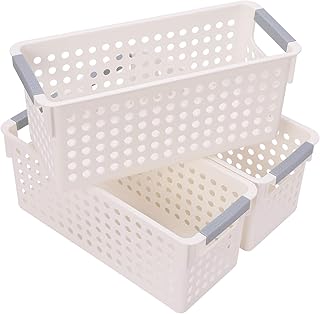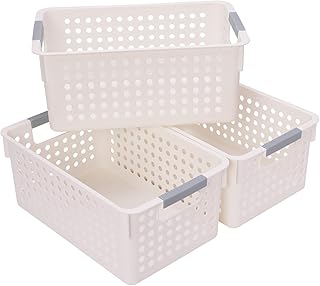 JAKAGO 3個 収納バスケット 収納ボックス プラスチック ( 収納ケース 小物収納 化粧品 キッチン 調味料 )ホワイト