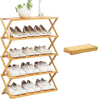 Kamelun ラック 靴置き 棚 シューズ ラック スリムラック 靴箱 すきま収納 5段 天然竹製 収納ラック キッチン収納 収納棚 省スペース