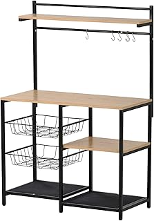 基本大型レンジ台 収納ラック オープンラック レンジ台 レンジラック 収納棚 キッチン収納 レンジボード (ナチュラル)
