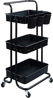 Ceeyali キッチン収納 バスケットトローリー キャスター付き 3段 マルチワゴン 収納ラック マルチワゴン キッチン収納 小物収納 耐荷重60kg (ブラック)