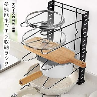 鍋ラック シンク下 フライパンラック 収納ラック キッチン収納 鍋蓋スタンド鍋 ふたスタンド チンラック フライパン収納 小物置き (5層 25.5×21×38cm)