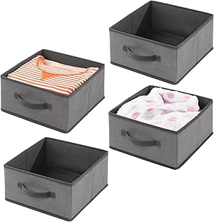 mDesign ソフトファブリックモジュラークローゼットオーガナイザーボックス フロントプルハンドル付き クローゼット 寝室 浴室 ホームオフィス 洋服 寝具 アクセサリー 4パック チャコールグレー