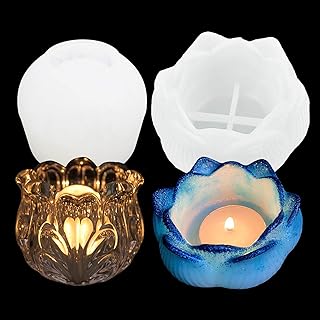 シリコンキャンドルスティック 樹脂型 2個セット フラワー エポキシ樹脂製 キャスティング型 DIY クラフト エレガント ジュエリートレイ 収納ボックス リング キャンドルホルダー ホームインテリア ギフトに最適