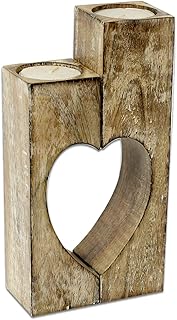 素朴な木製ロマンチックなティーライトキャンドルホルダー - 2個セット | 取り外し可能なティーライトキャンドル付き装飾キャンドルホルダー | インテリア&ギフトに最適