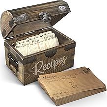 木製レシピボックス カード&仕切り付き 両面4x6レシピカード50枚付き 木製仕切り6枚 プレミアム品質 ギフトに最適 結婚式 誕生日 記念日 母の日