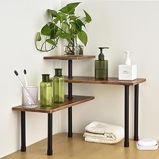 BCOZLUX キッチンカウンタートップオーガナイザー 3段コーナーシェルフ スペース節約 バスルームカウンターストレージシェルフ ヴィンテージスパイスラック 工業装飾 安定金属フレーム 組み立て簡単 素朴なブラウン