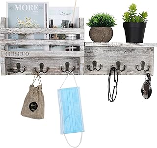 キーホルダー メールオーガナイザー 壁マウント フローティングシェルフとダブルキーフック 素朴な木製キーハンガー メールソーター 壁装飾 玄関 収納 リビングルーム 廊下 キッチン