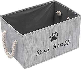 Xbopetda 犬用おもちゃ収納バスケット ファブリックストレージビン コットンロープハンドル付き 折りたたみ式オーガナイザーボックス キューブコンテナ 犬用品用 グレー