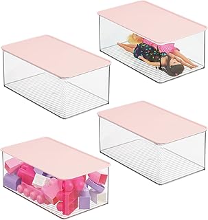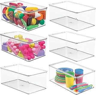 mDesign プラスチック製 積み重ね可能 おもちゃ収納ボックス 蓋付き 高さ5インチ 4個パック クリア 11896MDT