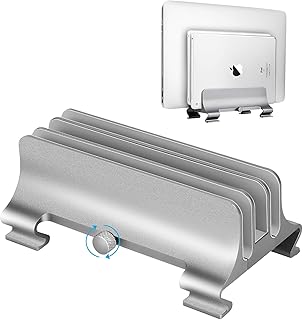 BECROWM ノートパソコン スタンド 縦置き pcスタンド 縦置き 5台収納 幅調整可能 パソコン縦置きスタンド アルミ合金(シルバー)
