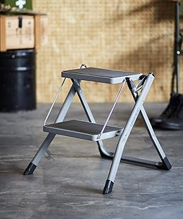 GORDON MILLER ステップラダー 洗車 DIY H45×W49×D48(使用時) 踏み台 折りたたみ 2段 スチール 耐荷重100㎏ GY グレー 1528034