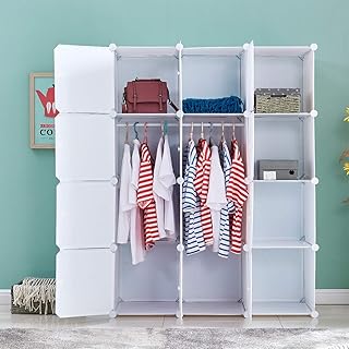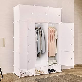 SIMPDIY クローゼッ ワードローブ 衣類収納 収納ラック棚 - 組み立て簡単 洋服収納棚 整理棚 扉付き 衣類ケース DIY大容量洋服タンス 収納ボックス 衣類 衣柜 closet wardrobe 衣装棚 服入れ 服ラック 防塵・防水·防カビ・耐荷重収納家具 幅105*奥行35*高さ140cm 12ボックス 白