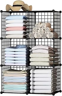 ワードローブ クローゼット メタルラック 組み立て ワイヤー収納ラック 収納ボックス 衣類ケース 鉄筋の骨組 耐久性 耐荷重 大容量 衣類収納 (6BOX)