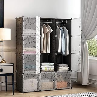 JOISCOPE 洋服収納ラック 黒と白い12扉 DIY クローゼット 組み立て式 ワードローブ 収納ボックス 大容量 おしゃれ 収納棚 防塵・防汚・防水