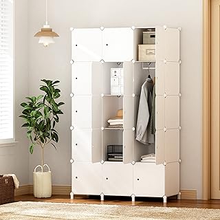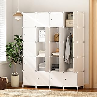JOISCOPE 洋服収納ラック 黒と白い20扉 DIY クローゼット 組み立て式 ワードローブ 収納ボックス 大容量 おしゃれ 収納棚 防塵・防汚・防水