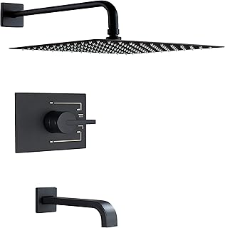 SOOOHOT マットブラック シャワー器具 ブラックシャワー蛇口セット 12インチ マットブラック シャワーヘッドとタブ注ぎ口付き ブラックシャワーヘッドとハンドルセット (バルブ付き)